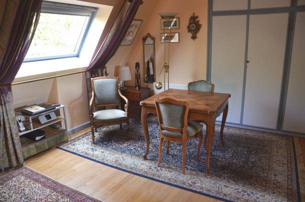 A l'étage: de 3 chambres, d'un bureau, d'une salle commune et d'un cabinet de toilette avec douche et WC.