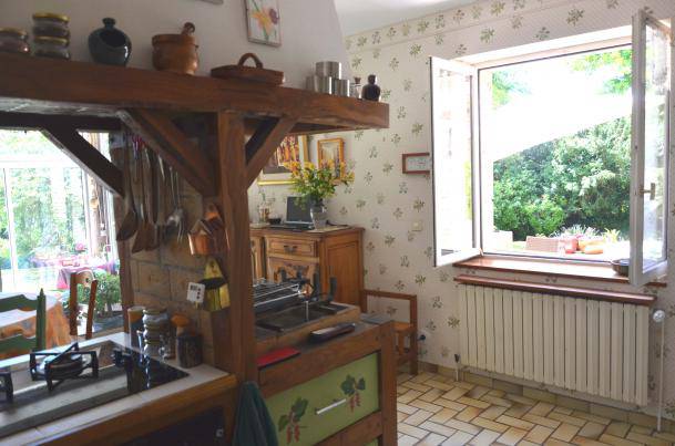 D'une cuisine équipée de 24m² avec cheminée et coin repas qui donne sur la véranda 12m².